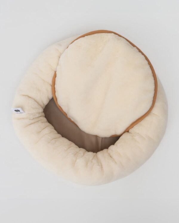Натуральна лежанка з мериносової вовни для котів і собак. М’яка, тепла, дихаюча — створює комфортний простір для відпочинку в будь-яку пору року.