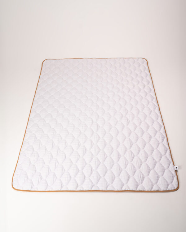 Наш наматрацник забезпечує неперевершений комфорт завдяки наповнювачу з вовни мериносу щільністю 400 грам на метр квадратний. Вовна мериносу відома своїми терморегулюючими властивостями, що дозволяють вашому тілу залишатися приємно прохолодним влітку і теплим взимку. Крім того, вона є природнім матеріалом, що сприяє здоров’ю шкіри та загальному благополуччю.